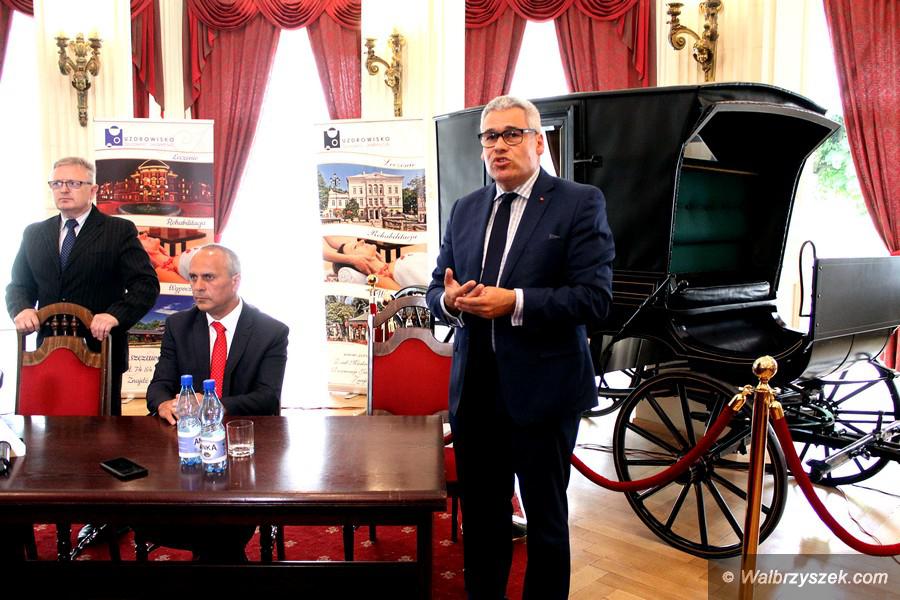 O obecnej sytuacji w sprawie Obwodnicy Zachodniej Wałbrzycha mówili w poniedziałek podczas konferencji prasowej w szczawieńskim Domu Zdrojowym włodarze miast i gmin Aglomeracji Wałbrzyskiej: Roman Szełemej - Prezydent Wałbrzycha, Marek Fedoruk - Burmistrz Szczawna-Zdroju, Leszek Orpel - Burmistrz Jedliny-Zdroju, Mirosław Lech - Wójt Gminy Stare Bogaczowice i Paweł Skrzywanek - Prezes Uzdrowiska Szczawno-Jedlina S.A.