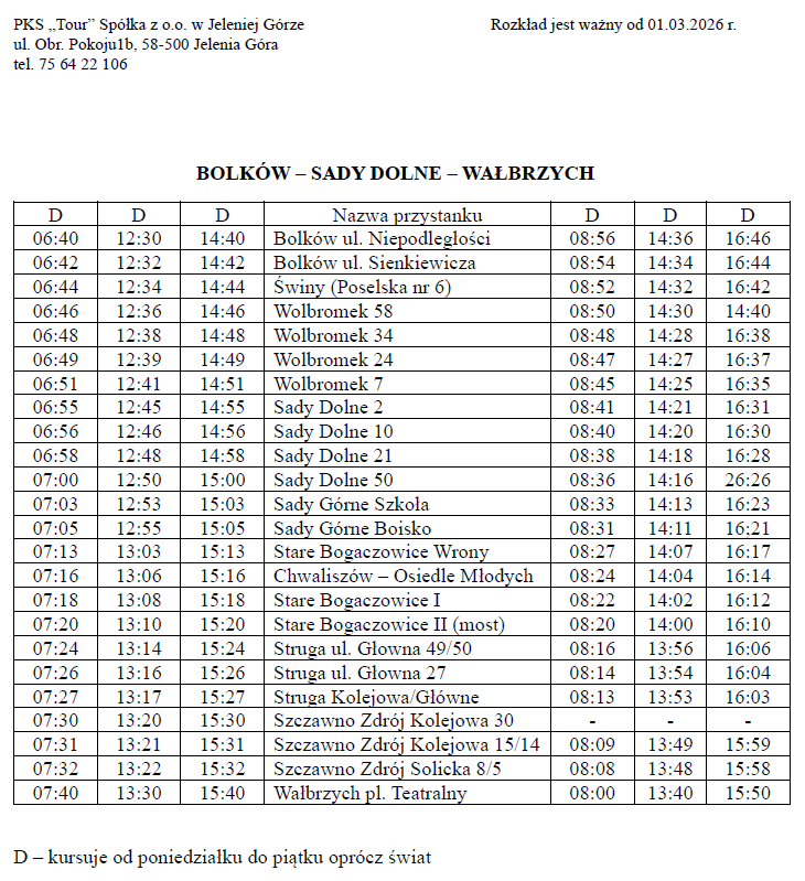 Nowy rozkład jazdy obowiązuje od: 1.03.2026 r.