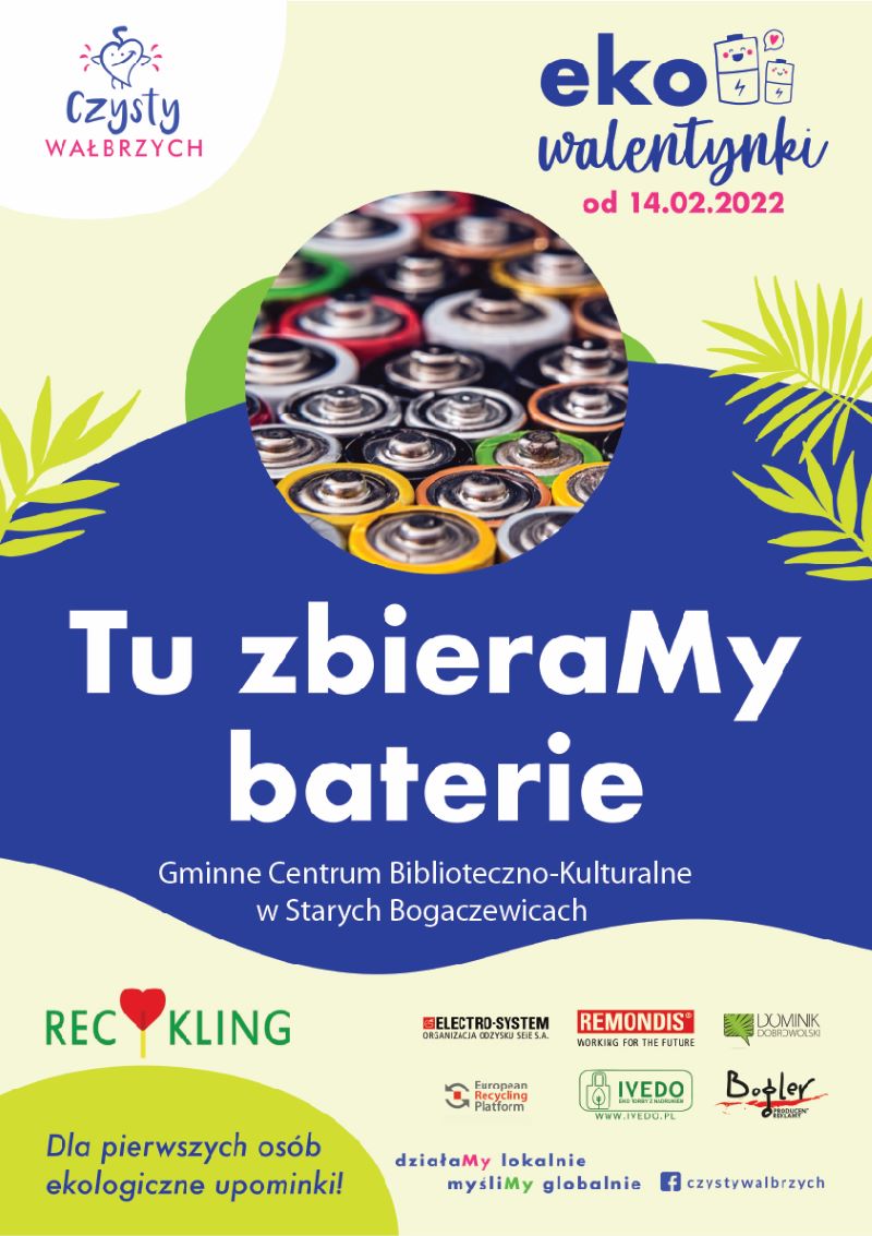 Do tej pory w akcji wzięło udział ponad 1000 partnerów w całej Polsce, ponad milion zebranych zużytych baterii. Partnerami obchodów „EkoWalentynki 2022” w Polsce są: REMONDIS Electrorecycling Sp. z o.o., Electro-System Organizacja Odzysku SEiE S.A. i ERP Polska Organizacja Odzysku SEiE i Organizacja Odzysku Opakowań S.A. - firmy, dzięki którym każdego roku wzrasta w Polsce poziom odzysku i recyklingu zużytych baterii oraz elektroodpadów. Akcję w naszym regionie akcję koordynuje Stowarzyszenie Czysty Wałbrzych (@czystywch) ze wsparciem drukarni Bogler i producenta toreb firma Ivedo.