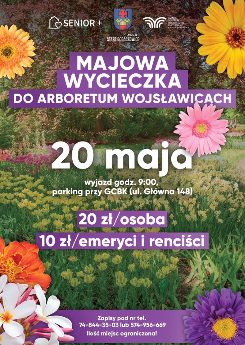Serdecznie zapraszamy na majową wycieczkę do Arboretum w Wojsławicach w dniu 20 maja 2023 r. Wyjazd o godzi. 9;00 z parkingu przy Gminnym Centrum Biblioteczno -