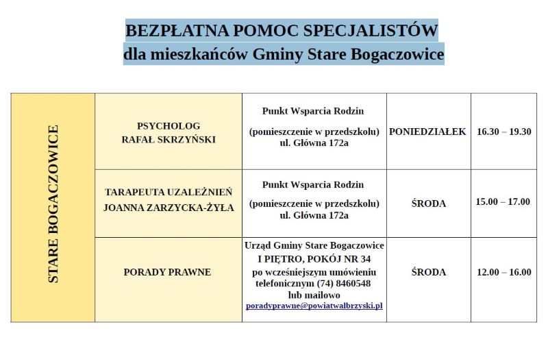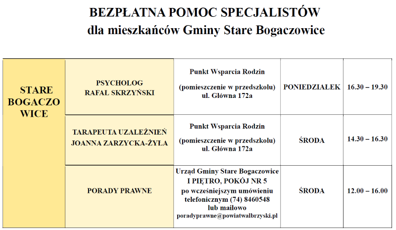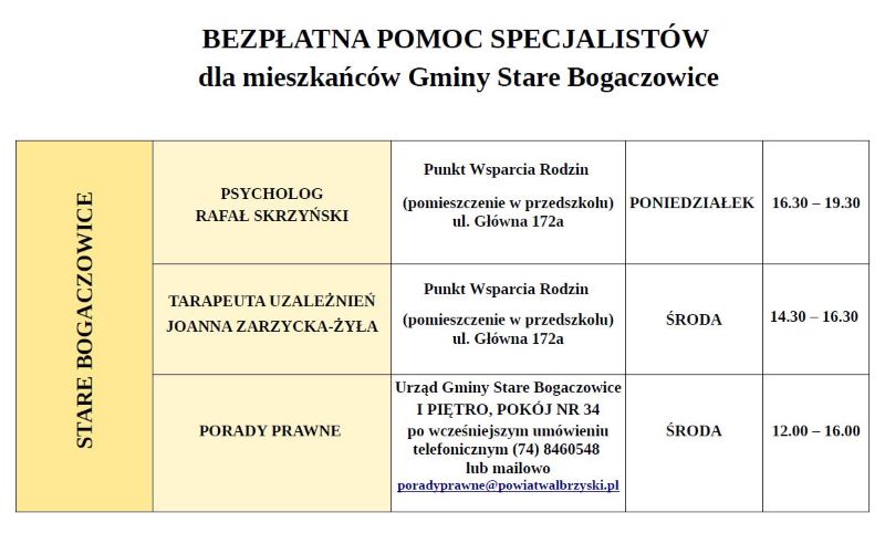 Bezpłatna pomoc specjalistów dla mieszkańców Gminy Stare Bogaczowice Stare Bogaczowice pdf