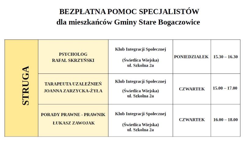 Bezpłatna pomoc specjalistów dla mieszkańców Gminy Stare Bogaczowice Struga pdf