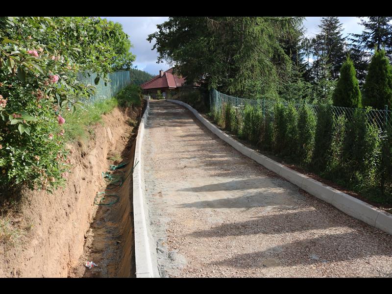 widać duży postęp prac przy budowie nawierzchni drogi gminnej. A w Strudze powstaje chodnik przy drodze wojewódzkiej.